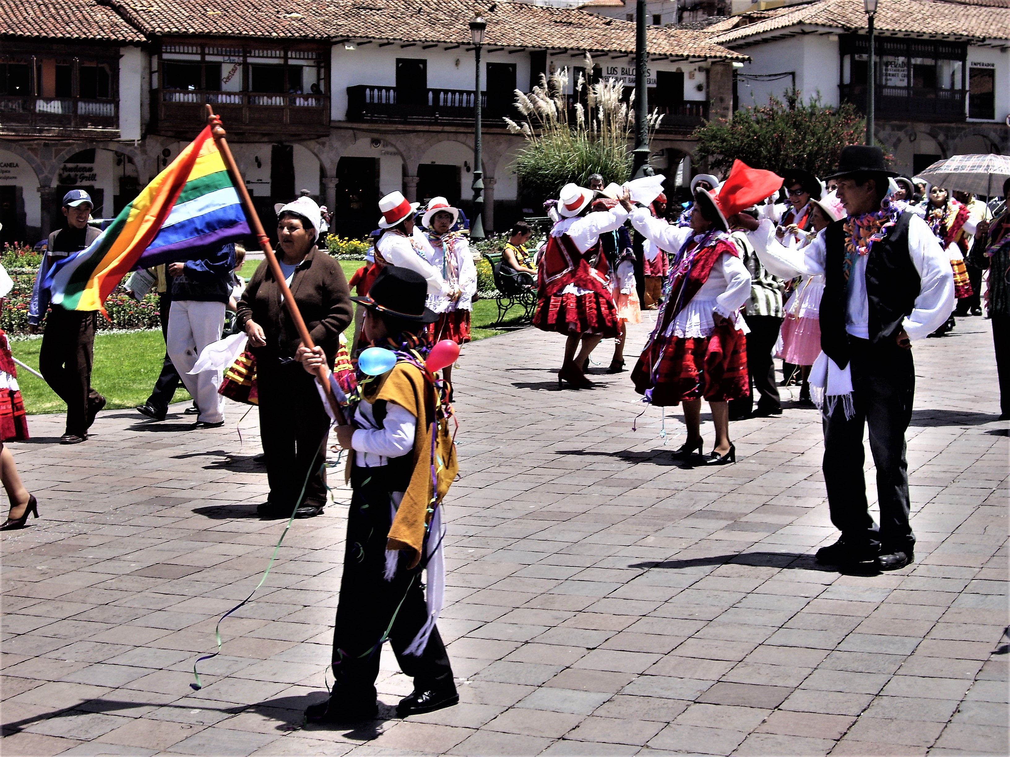 Πέμπτη 19 Φεβρουαρίου 2009. Πριν από 5 ώρες αναχωρούσα από το διεθνές αεροδρόμιο της Αρεκίπα, το Αλφρέδο Ροδρίγες Μπαγιόν στα 2.560 μέτρα, και αυτήν την στιγμή, ακριβώς 12 το μεσημέρι, βρίσκομαι σε υψόμετρο 3.399 μέτρων κατευθυνόμενος στην Πλάσα ντε Άρμας, την κεντρική πλατεία του Κούσκο. Η πλατεία ήταν το εμπορικό, θρησκευτικό και διοικητικό κέντρο της πόλης ήδη από την εποχή των Ίνκας οι οποίοι την δημιούργησαν αφού αποξήραναν προηγουμένως τον βάλτο που υπήρχε στο σημείο αυτό.