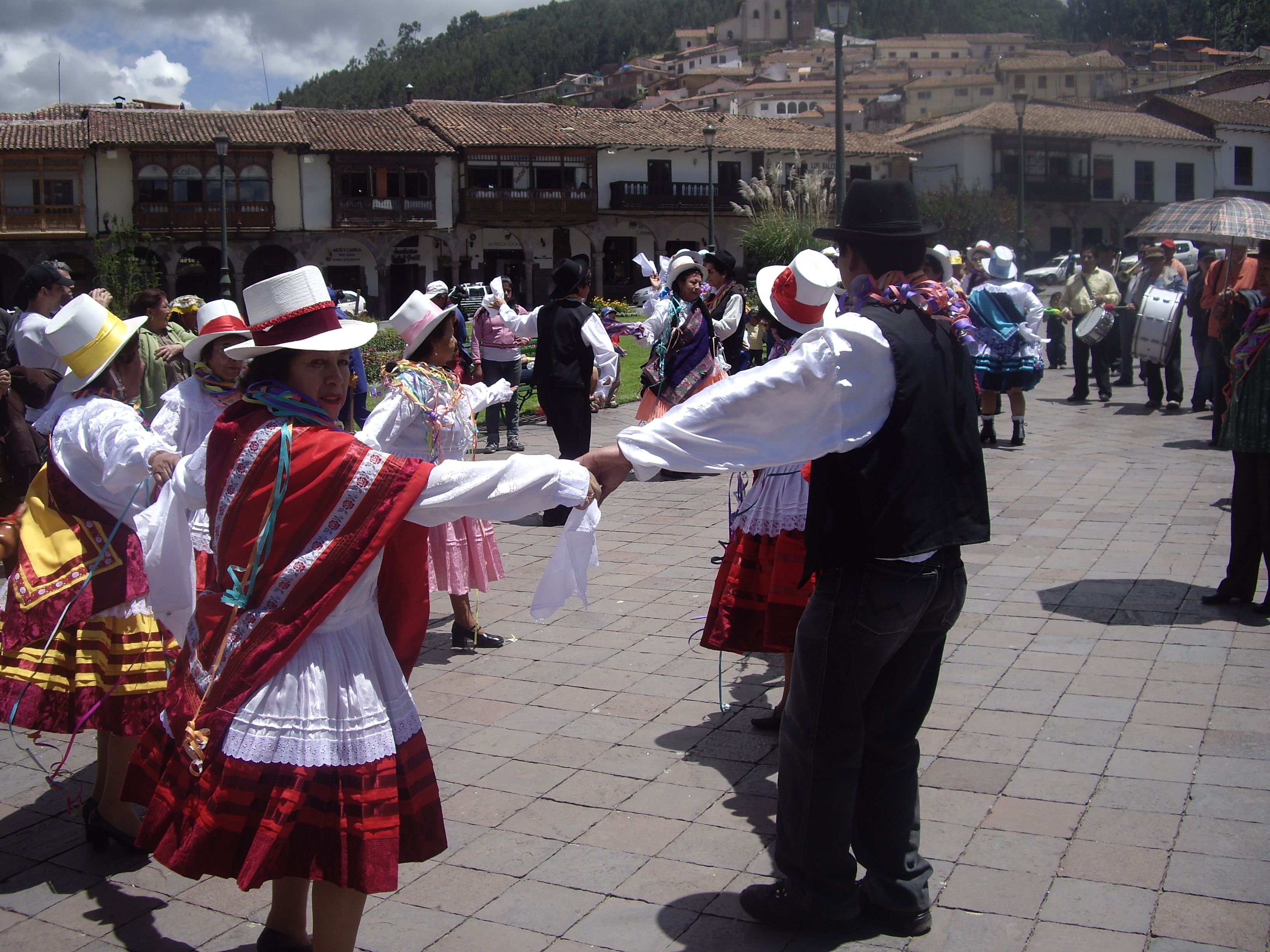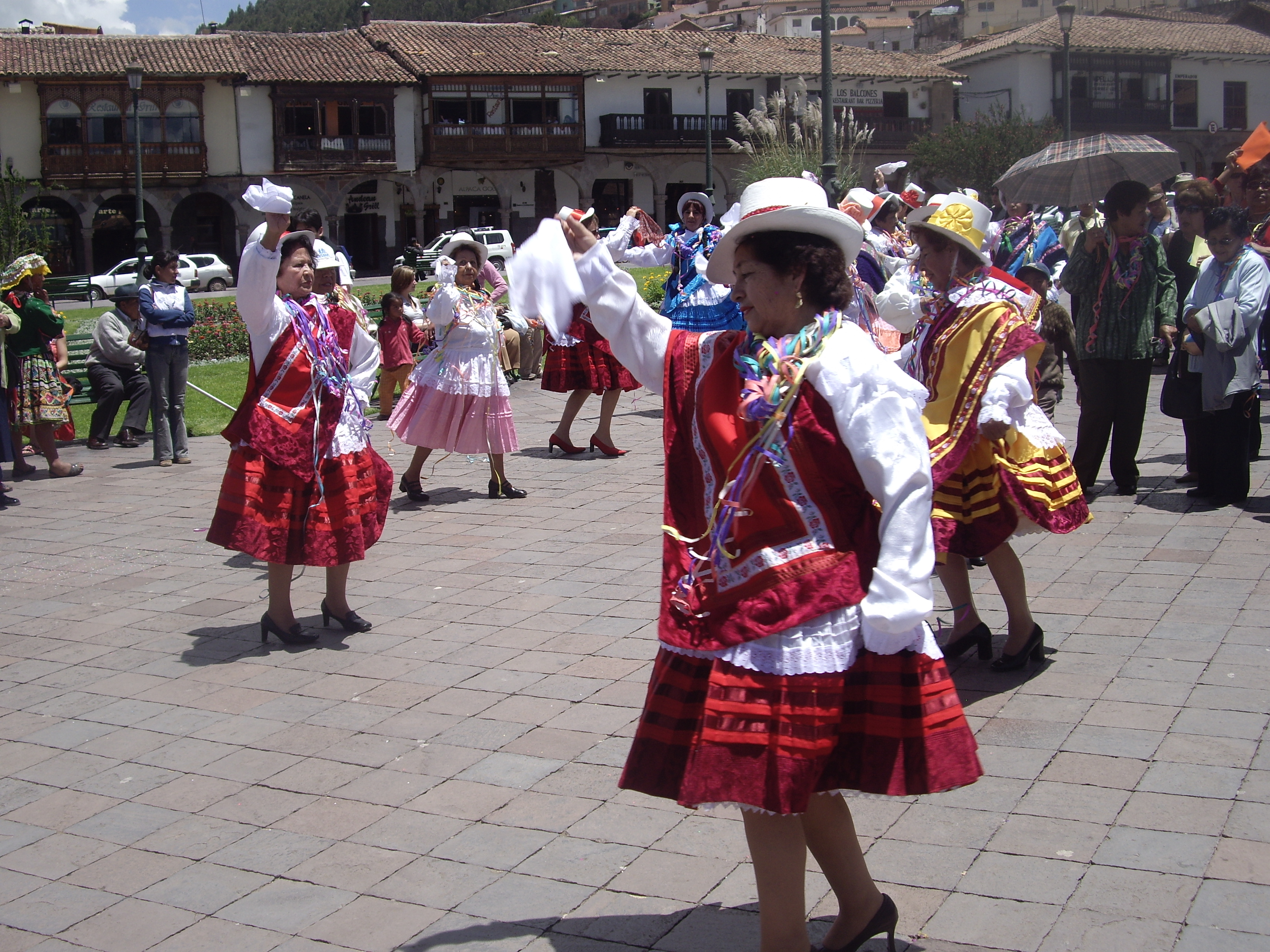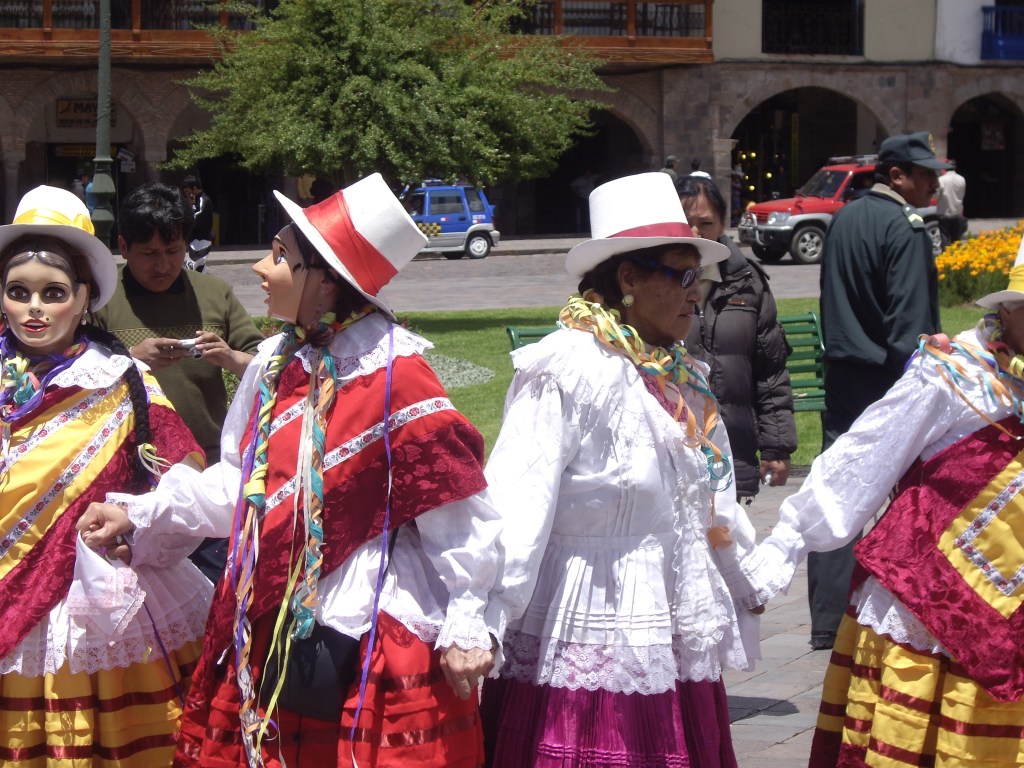 Οι γυναίκες φορούν λευκά και πορφυρά φορέματα, λευκό ημίψηλο καπέλο με πορφυρή κορδέλα, καθώς επίσης και ψηλοτάκουνα παπούτσια. Ψηλοτάκουνα στις Άνδεις και στα 3,4 χιλιόμετρα υψόμετρο! Αυτό κι αν είναι έκπληξη. Και σχεδόν όλες φορούν μάσκες με ευρωπαϊκά χαρακτηριστικά. Οι δε άνδρες φορούν λευκό πουκάμισο με καπέλο φεντόρα, παντελόνι και γιλέκο όλα σε μαύρο χρώμα.
