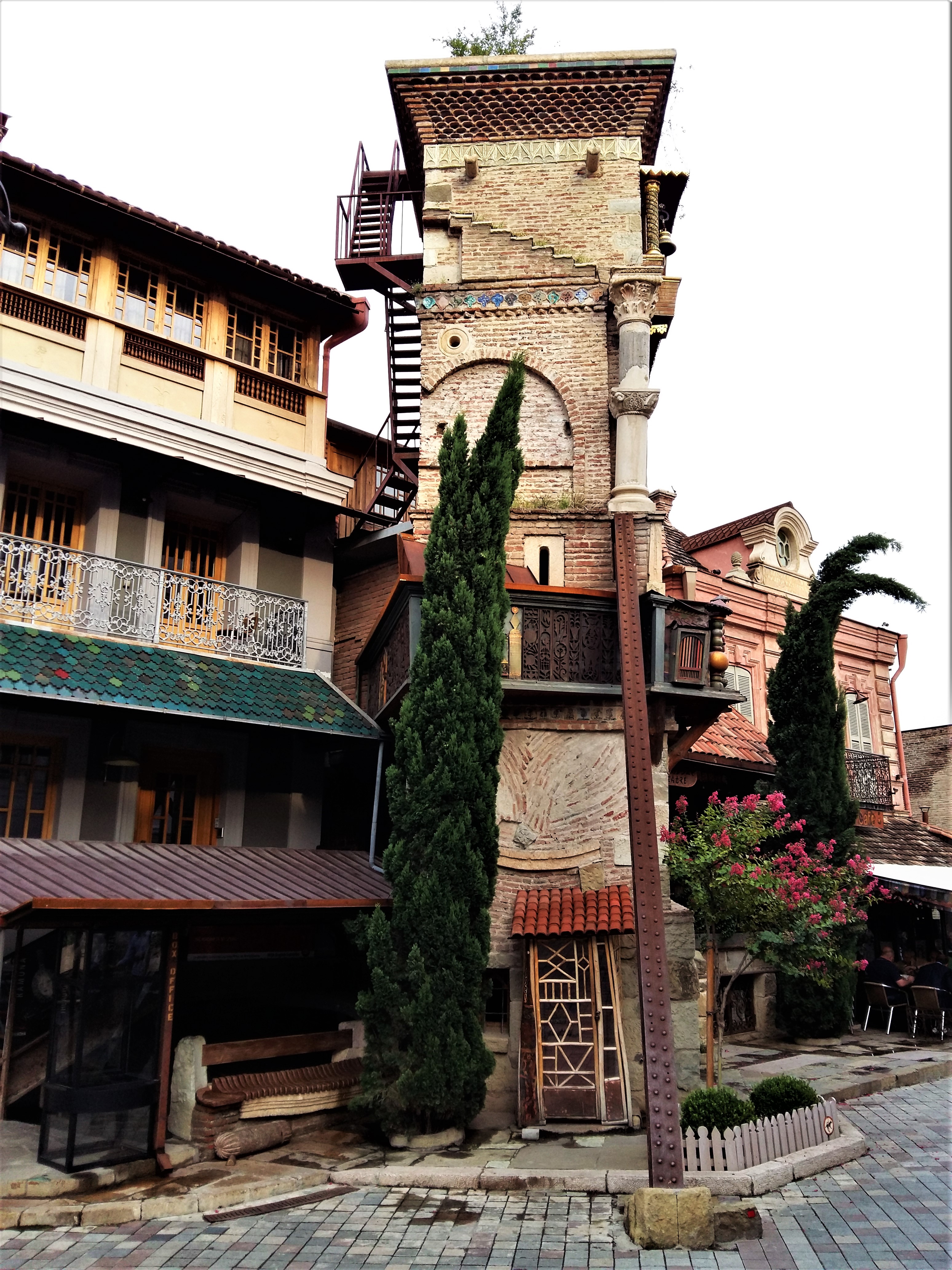 Καθώς περπατώ παρατηρώντας το ιδιαίτερο χρώμα της πόλης, βλέπω έναν σχεδόν παραμυθένιο πρωτότυπο κεκλιμένο πύργο, ο οποίος δεν διαφέρει και πολύ από αυτούς που βλέπουμε σε κινούμενα σχέδια. Πρόκειται για τον πύργο που έχτισε με υλικά απο τα ισοπεδωμένα κτήρια του 2002 ο Ριβάζ Γκαμπριάντζε.