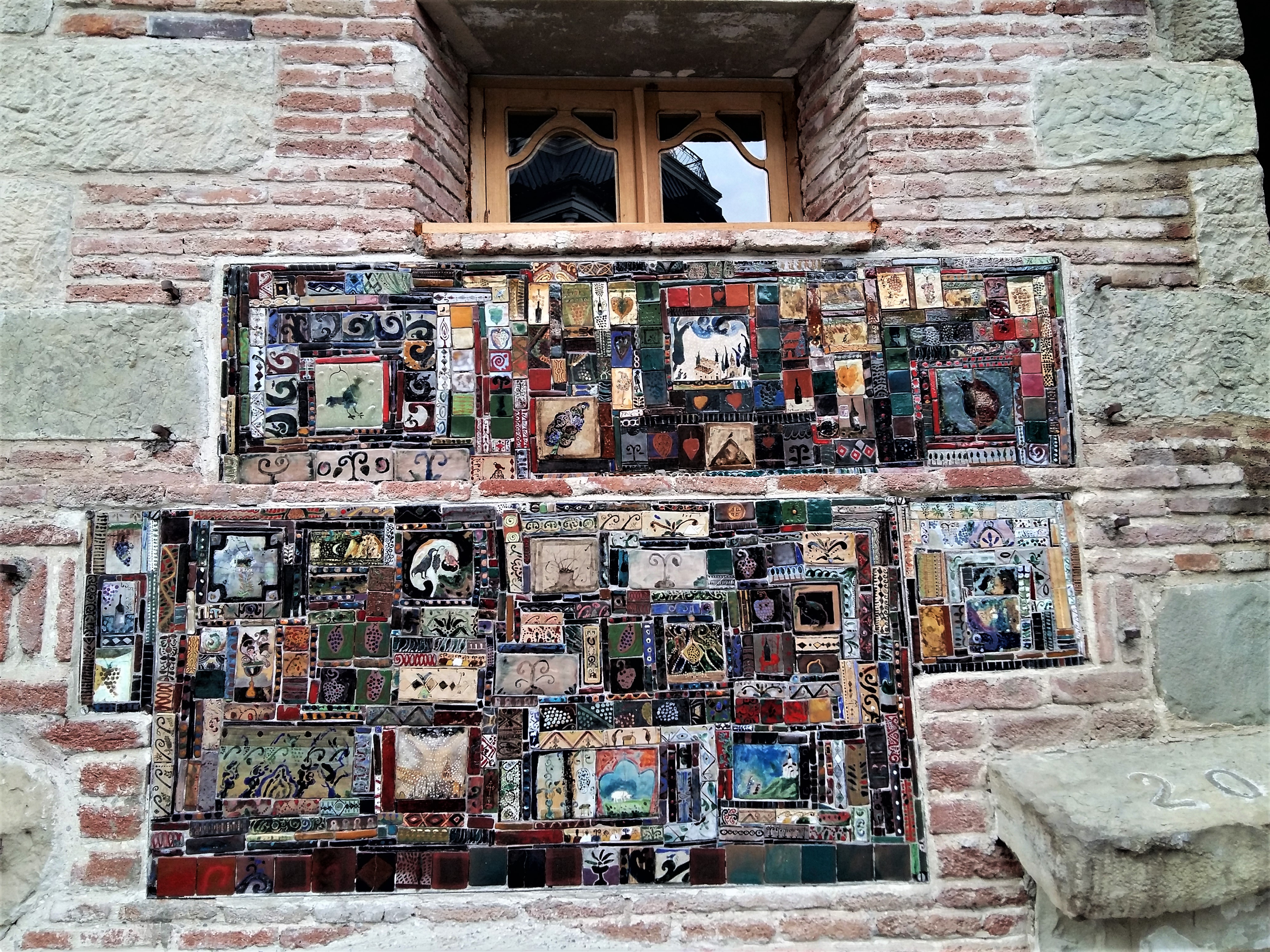 Ο ναΐφ πύργος μοιάζει με αρχιτεκτονικό παιχνίδισμα. Με το που τον βλέπεις έχεις την εντύπωση πως όπου να ‘ναι θα σωριαστεί. Εϊναι τριώροφος κάθε όροφος είναι ανόμοιος σε εμβαδόν και κλίση με τον προηγούμενό του. Μια κεκλιμένη ατσάλινη δοκός στο χρώμα της σκουριάς που ξεκινά από το έδαφος φαίνεται να τον στηρίζει. Βέβαια, πρόκειται για οπτικό τρικ, αφού στην ουσία ο πύργος δεν είναι αυτόνομος, αλλά αποτελεί κατά κάποιον τρόπο προέκταση του τοίχου. Ο Γκαμπριάντζε πρέπει να συνεργάστηκε άψογα με τους μηχανικούς και τους αρχιτεκτονες για να φτάσει σε ένα τόσο εξαιρετικό αποτέλεσμα.