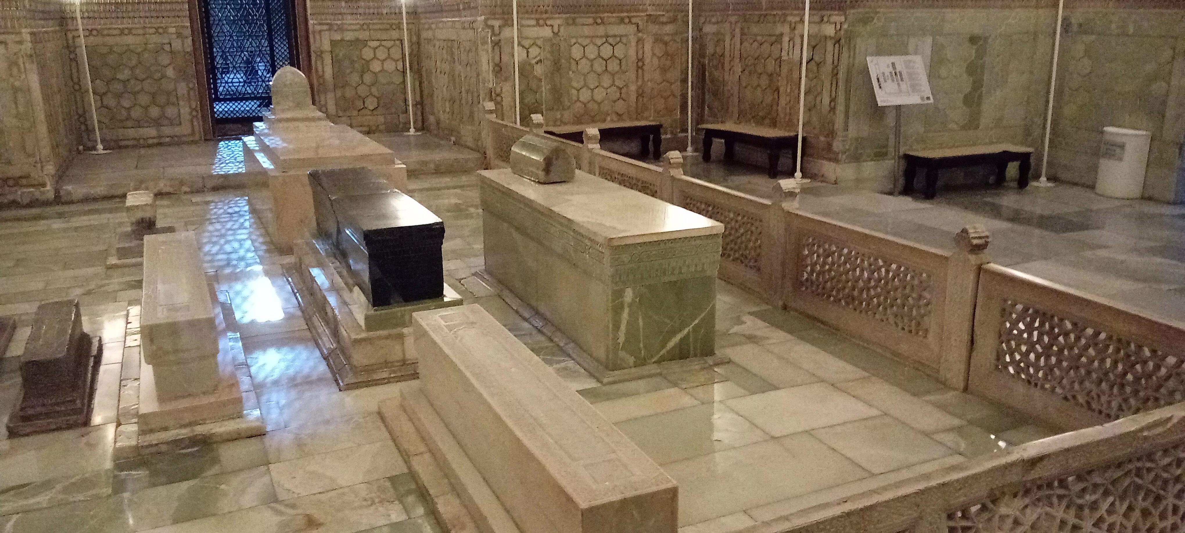 Στο εσωτερικό μια κρύπτη στην τεράστια αίθουσα φιλοξενεί τους τάφους των Τιμουριδών. Δεν μου είναι δύσκολο να εντοπίσω ανάμεσά τους τον τάφο του Ταμερλάνου, καθώς ξεχωρίζει με το πράσινο χρώμα του νεφρίτη από τον οποίο είναι κατασκευασμένος. Δίπλα του, βρίσκονται οι μαρμάρινοι τάφοι των απογόνων του.