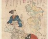 Στην έγχρωμη αυτή ξυλογραφία του 1890 απεικονίζεται ο αιμοδιψής Κιγιομόρι να έχει τρελλαθεί και να φαντάζεται ότι το ανάκτορό του είναι περικυκλωμένο από τα εκδικητικά φαντάσματα της αντίπαλης φυλής των Μιναμότο που έχουν πάρει την μορφή των κρανίων των θυμάτων του και του παρουσιάζονται πίσω από μια συρόμενη εξώθυρα. Επρόκειτο για την κατάρα που του έστειλε από τον τάφο ο νεκρός ανταγωνιστής του για την επικράτηση στην Ιαπωνία του 12ου αιώνος, Μιναμότο νο Γιοσιμότο,